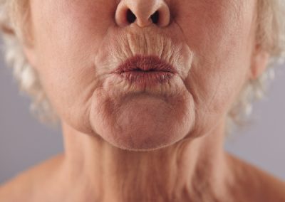 Noen pasienter ubevisst strammer huden på haken når de er i ro eller mens de snakker. Normalt legger ikke pasienten merke til dette selv, men personer pasienten snakker med legger ofte merke til dette og vi som estetiske behandlere ser dette umiddelbart.